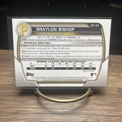 2023 Bowman Baseball Braylon Bishop #BP-90 1st Paper Prospect Pirates