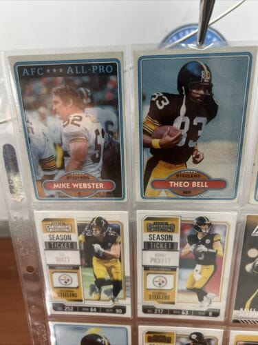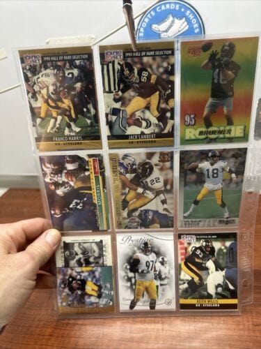 NFL Category Pittsburgh Steelers Football Trading Cards for sale cards we sale are all your top brands of Football Cards. Panini Prizm, Panini Zenith, Panini Select, Panini Contenders, Donruss, Donruss Optic Football, Donruss Elite. Topps, Pro Set, Topps cosmic , Fleer, Score, Upper Deck We carry all the top NFL Players Veteran and Rookie Cards refractors, Parallels , Prizms, Halo , Autographs, Relics, Patch Autos, Serial numbered Cards and many other choices of top NFL sports Cards. This page contains Lots and single Cards of Players card that play for the Pittsburgh Steelers of the National Football League.