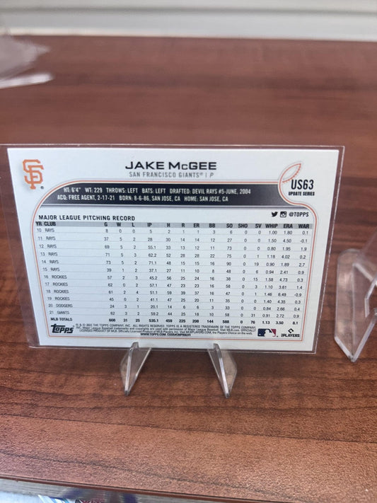 Jake McGee 2022 Topps Update #US63 San Francisco Giants