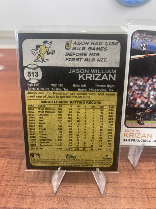Jason Krizan RC 2022 Topps Heritage #513 San Francisco Giants
