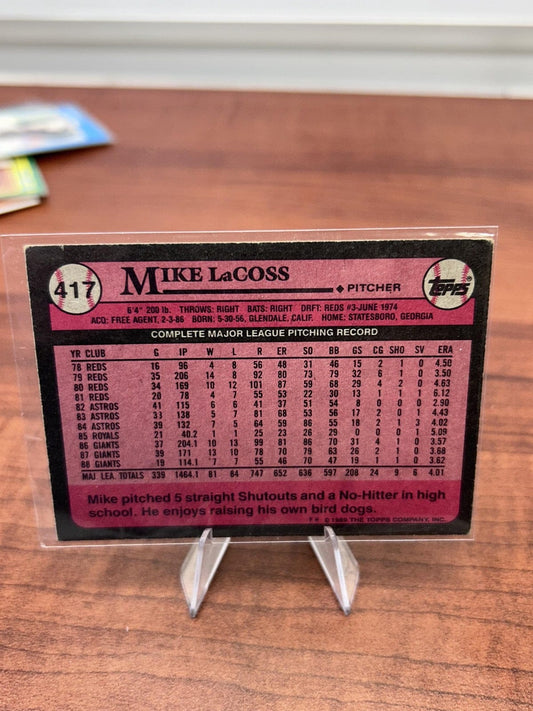 Mike LaCoss 1989 Topps #417 San Francisco Giants
