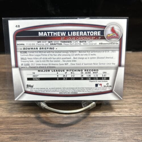 2023 Bowman Matthew Liberatore #48 RC St. Louis Cardinals Baseball Ca