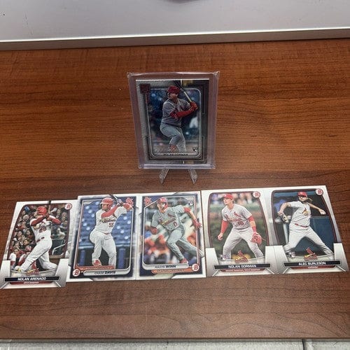 St. Louis Cardinals MLB Sports Trading Cards will be listed in this collection all the top Players present day and all of the HOF Players from different eras. We stock Topps ,Topps Heritage ,Topps Archives, Topps Gallery, Topps Tribute, Topps Chrome , Topps Chrome Cosmic, Bowmans Best , Bowman Platinum ,Bowman, Bowman Draft, Bowman Draft Chrome, Bowman Chrome Prospects, Panini Select, Panini Prizm, Donruss, Donruss Optic, Upper Deck, Fleer, Fleer Ultra, Score and Many more. You will also find Autographed Cards, Relics, Serial Numbered Cards such as 1/1 ,5,/10,/25,/50,/99,/150,/199,/250,/299,/499. And if you are looking for type of parallel color parallel we have the whole rainbow of selection.