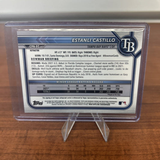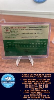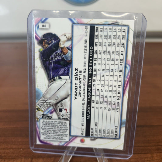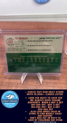 MLB Category Tampa Bay Rays MLB Sports Trading Cards will be listed in this collection all the top Players present day  and all of the HOF Players from different eras. We stock Topps ,Topps Heritage ,Topps Archives, Topps Gallery, Topps Tribute, Topps Chrome , Topps Chrome Cosmic, Bowmans Best , Bowman Platinum ,Bowman, Bowman Draft, Bowman Draft Chrome, Bowman Chrome Prospects, Panini Select, Panini Prizm, Donruss, Donruss Optic, Upper Deck, Fleer, Fleer Ultra, Score and Many more. You will also find Autographed Cards, Relics, Serial Numbered Cards such as 1/1 ,5,/10,/25,/50,/99,/150,/199,/250,/299,/499. And if you are looking for type of parallel color parallel we have the whole rainbow of selection.
