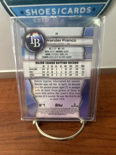 MLB Category Tampa Bay Rays MLB Sports Trading Cards will be listed in this collection all the top Players present day and all of the HOF Players from different eras. We stock Topps ,Topps Heritage ,Topps Archives, Topps Gallery, Topps Tribute, Topps Chrome , Topps Chrome Cosmic, Bowmans Best , Bowman Platinum ,Bowman, Bowman Draft, Bowman Draft Chrome, Bowman Chrome Prospects, Panini Select, Panini Prizm, Donruss, Donruss Optic, Upper Deck, Fleer, Fleer Ultra, Score and Many more. You will also find Autographed Cards, Relics, Serial Numbered Cards such as 1/1 ,5,/10,/25,/50,/99,/150,/199,/250,/299,/499. And if you are looking for type of parallel color parallel we have the whole rainbow of selection.