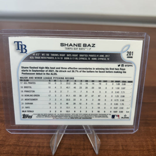 2022 Topps Chrome #201 Shane Baz RC Rookie Tampa Bay Rays