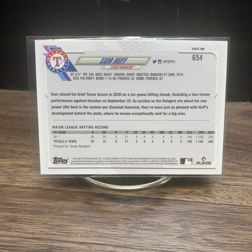 2021 Topps Series 2 #654 Sam Huff Gold Star Parallel RC Rangers SP