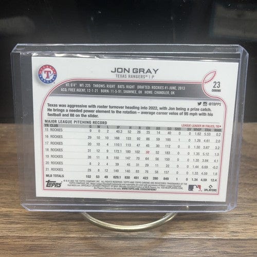 2022 Topps Chrome Baseball Jon Gray Base #23 Texas Rangers