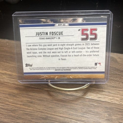 2023 Bowman Chrome Justin Foscue Scouts Top 100 #BTP-55 Rangers