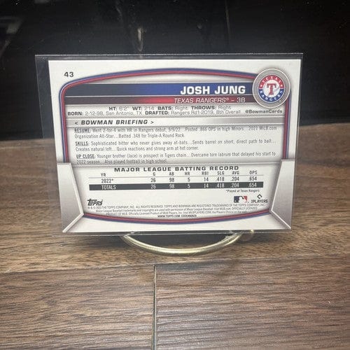 2023 Bowman Josh Jung #43 RC Texas Rangers Baseball Card