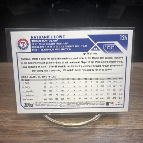 2023 Topps Series 1 Baseball Nathaniel Lowe #124 Texas Rangers