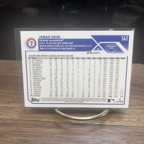 2023 Topps Series One Baseball Jonah Heim Base #141 Texas Rangers