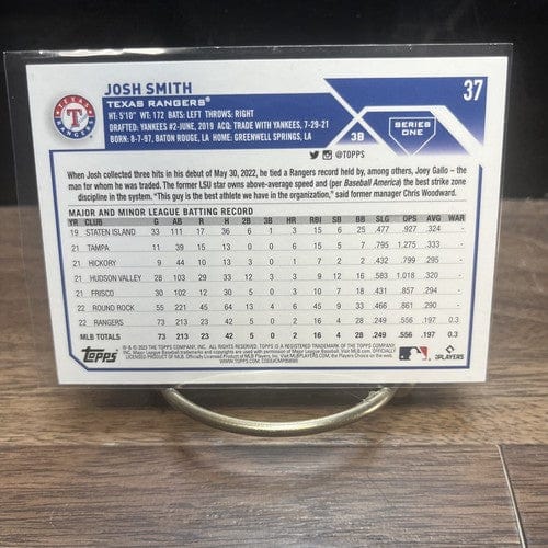 Josh Smith TEXAS RANGERS ROOKIE BASEBALL CARD #37 2023 TOPPS SERIES ON