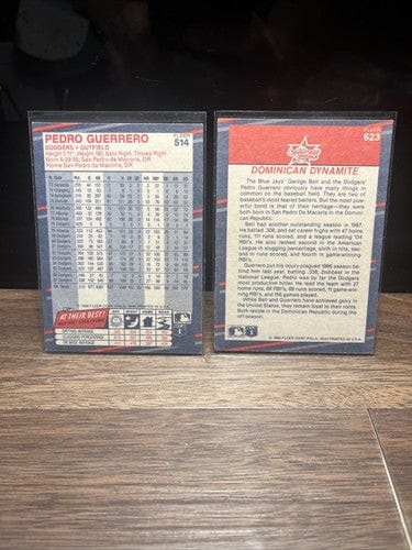 1988 Fleer George Bell/Pedro Guerrero #623 Jays Dodgers +Guerro #514 2