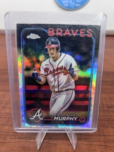 This 2024 Topps Chrome Logofractor Edition sports trading card features Atlanta Braves player Sean Murphy and comes with an exclusive design. The card is numbered 255 and is a part of the Major League (MLB) baseball league. It is a single trading card from the set and is not autographed.