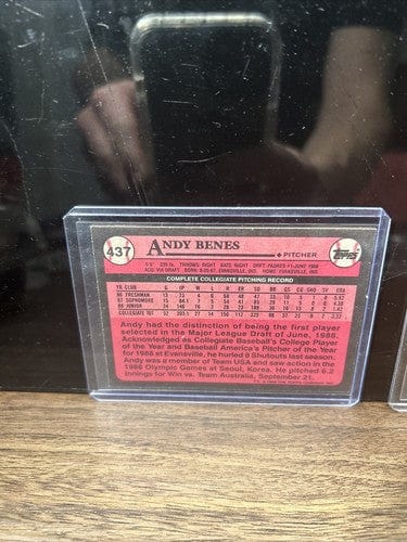 Andy Benes RC Lot (2) 1989 Topps #1 Draft Pick #437, 1988 Topps USA Ba