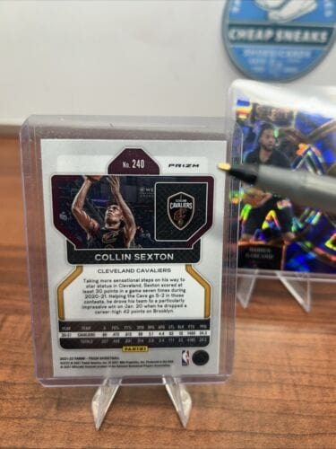 Lot has 4 out of the 5 are prizms along with 2 RC ‘s This lot includes five Cleveland Cavaliers trading cards featuring players Darius Garland, Collin Sexton, Donovan Mitchell, Emoni Bates, and Evan Mobley. The cards are from the 2024 season and are part of the Cracked Blue Ice Prizm, Green Prizm Parallel, Orange Flash Prizm, and Blue Shimmer Prizm sets. The cards have features such as Orange Flash Prizm, Cracked Blue Ice Prizm, and Blue Shimmer Prizm. The card numbers are 67, 5, 151, 240, and 31. The cards are in standard size and manufactured by Panini. The lot is perfect for Cleveland Cavaliers fans and sports trading card collectors.