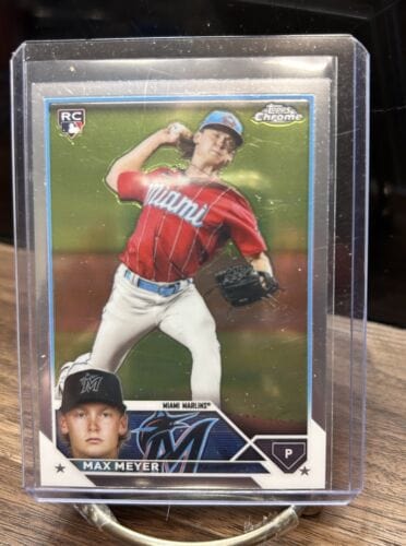 For baseball card collectors and Miami Marlins fans, this Max Meyer Rookie RC 2023 Topps Chrome Baseball Card #104 is a must-have addition to your collection. Featuring a standard size and made of card stock, this Topps Chrome card is an original and serial numbered collectors edition. It includes hologram, stamped, and exclusive features, as well as being a 1st Edition, insert, chase, framed, short print, promo, parallel/variety, base set, limited edition, and checklist card.